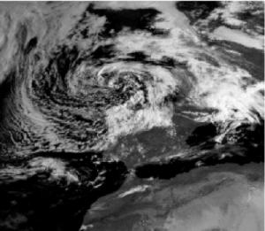 Un ejemplo: la meteorología.Una aplicación interesante para el astronómo aficionado es la capacidad de los satélites de obtener información meteorológica. En la página web del Laboratorio (http://www.latuv.uva.es) se pueden obtener cada 20 minutos imágenes del estado del cielo sobre España, recibidas del Meteosat. Con unos someros conocimientos de meteorología, y con la ayuda de los vídeos digitales que se incluyen en la página, es posible programarse las observaciones. Ya no nos hace falta especular, o hacer caso al hombre del tiempo de la televisión, sino que podemos verlo en directo.