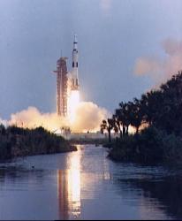 Lanzamiento del Apolo 13 desde Cabo Kennedy en un cohete Saturno V. (NASA)