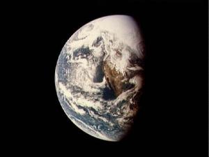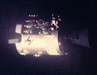 Imagen de televisión del Apolo 13 obtenida mediante una cámara acoplada a un telescopio Schmidt-Cassegrain de 40 cm de diámetro, durante su vuelta hacia la Tierra. (NASA)