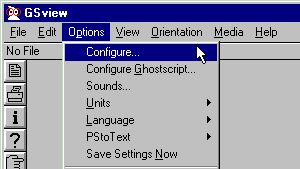 Instalando GhostScript & GSview en MS-WindowsLa instalación de GS y GV en Windows95/98 es realmente simple. Únicamente ha de copiar el archivo GS.ZIP que ocupa poco menos de 3 MB a la unidad C: de su disco duro y descomprimir su contenido con el WinZip o programas similares en la carpeta C:\GSTOOLS. Con el Explorador de Windows ejecute el programa gsview.exe de la carpeta C:\GSTOOLS\GSVIEW y ya tendrá casi listo su programa visor de PostScript.Para instalar estos programas en otro destino diferente, simplemente